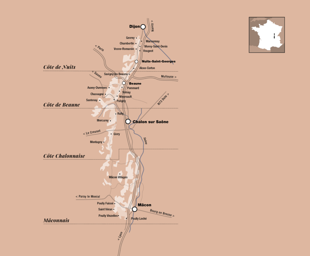 “Amabile e vinosa Borgogna”… scriveva Michelet. Assieme all’area Bordolese e all’area della Champagne, la Borgogna è splendida ambasciatrice del prestigio dei vini di Francia. Collocata tra le due metropoli francesi, Parigi e Lione, essa racconta la storia di una civiltà forgiata dalla vite e tra le vigne. Dalle abbazie di Citeaux e Cluny, ove monaci pazienti hanno preservato rari cloni di Chardonnay e Pinot Noir, al regno dei duchi di Borgogna, sino al frazionamento dei loro possedimenti per mano dell’Imperatore Napoleone I. Una linea di eventi memorabili segna in modo indelebile questa meravigliosa terra. Il risultato che ne consegue è un vino che come pochi sa esprimere la dimensione di una conturbante sensualità. In breve possiamo descrivere un bicchiere di vino di Borgogna come un… “agitateur d’emotions”.