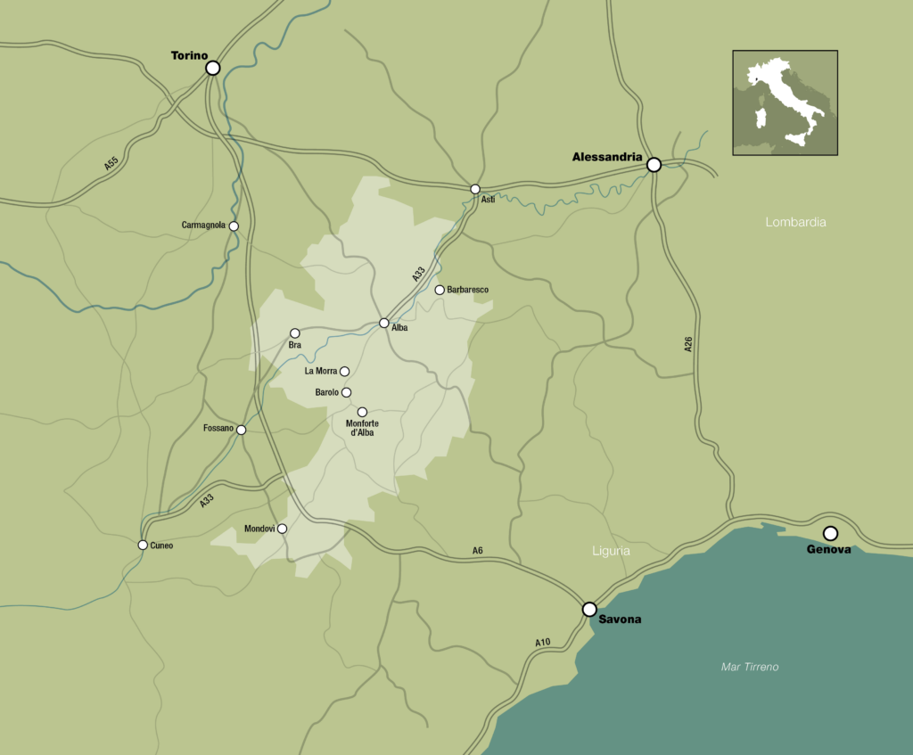 Le Langhe sono una regione storica del Piemonte, situata a cavallo delle province di Cuneo e Asti, confinante con altre regioni, ossia il Monferrato e il Roero, e costituita da un esteso sistema collinare. Al loro interno esistono una varietà di suoli non comune in nessun’altra zona viticola italiana e forse nel mondo. Il termine Langhe secondo alcuni studiosi deriverebbe da “Langues”, delle lingue di terra che si sviluppano in un gioco di profili modulati dal mutare delle stagioni, sulle colline che dominano il fiume Tanaro.