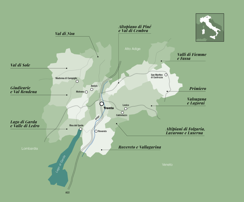 La Valle di Cembra è un territorio terrazzato di montagna sorretto da oltre settecento chilometri di muretti a secco per un totale di circa trecento ettari di coltivazioni, uno spettacolo creato dall’uomo per ammorbidire le pendenze e favorire l’agricoltura nonché il sostentamento di una comunità contadina.